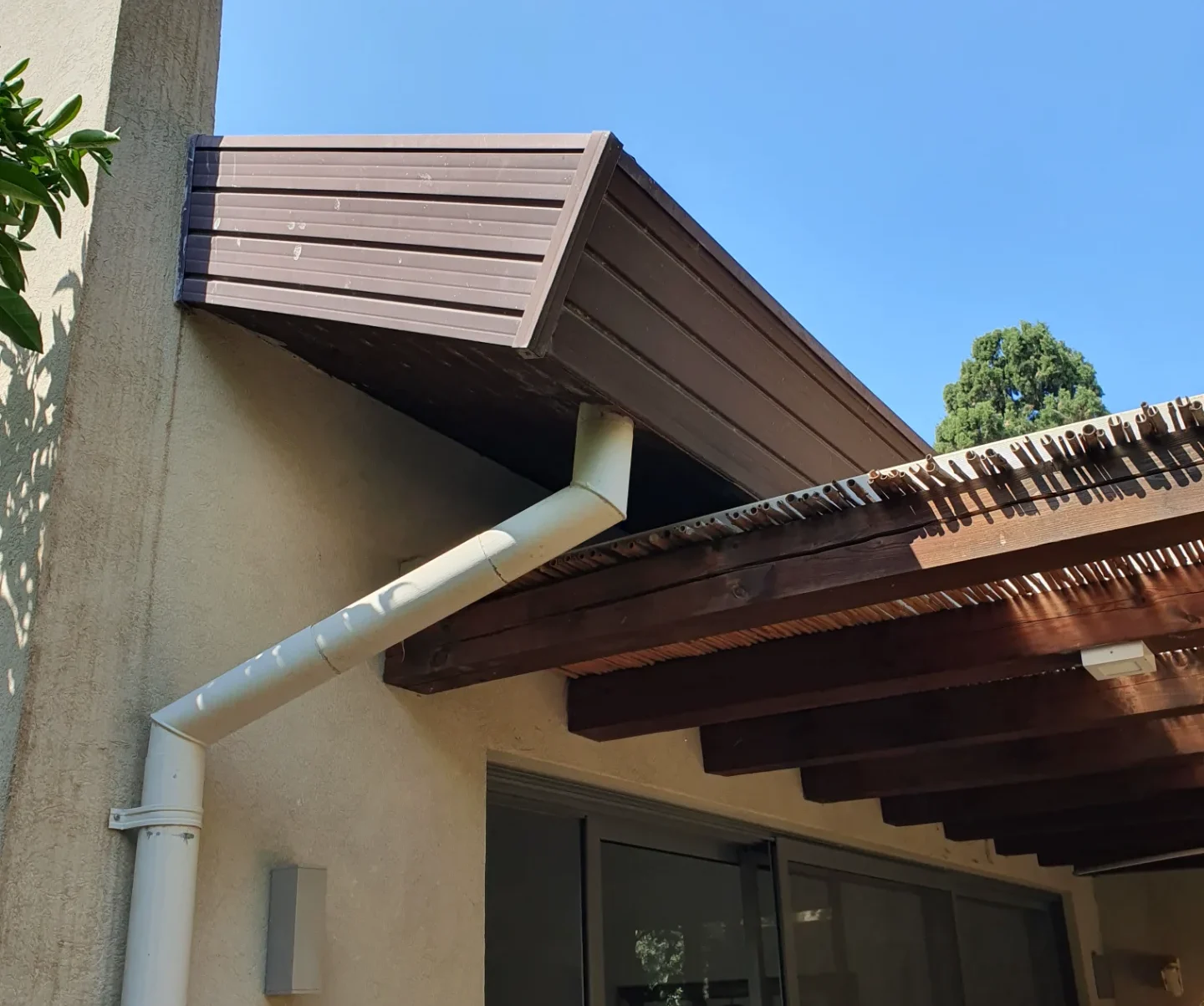 שינוי גג ליצירת פרגולות גבוהות: שינוי מבני של הגג לצורך התקנת פרגולות גבוהות והפיכת מרזבים לפרט נסתר לניקוז מים.